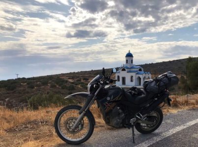 Yannis spricht gut Deutsch und die Technik war in einem ordentlichen Zustand. Als Yannis dann hörte, dass wir in den 7 Tagen rund um die Insel fahren wollen, hat er für uns noch flugs eine Dose Kettenspray organisiert. Und wie sich herausstellen wird, sind die beiden XTs für die Bedingungen auf der Insel die perfekte Wahl.